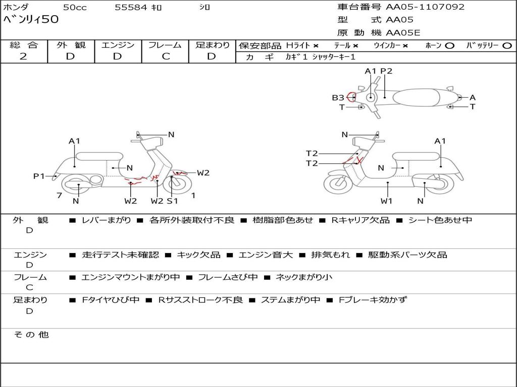 | Номер рамы / VIN | AA05-1107092 |
