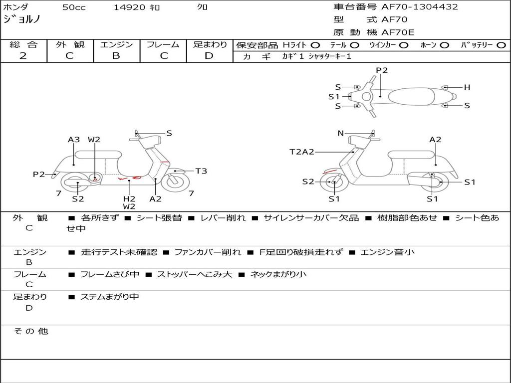 | Номер рамы / VIN | AF70-1304432 |