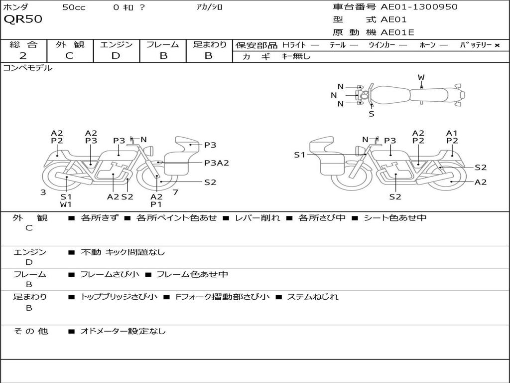 | Номер рамы / VIN | AE01-1300950 |