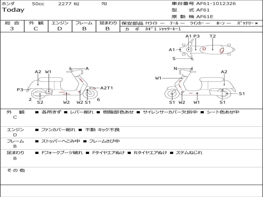 | Номер рамы / VIN | AF61-1012326 |