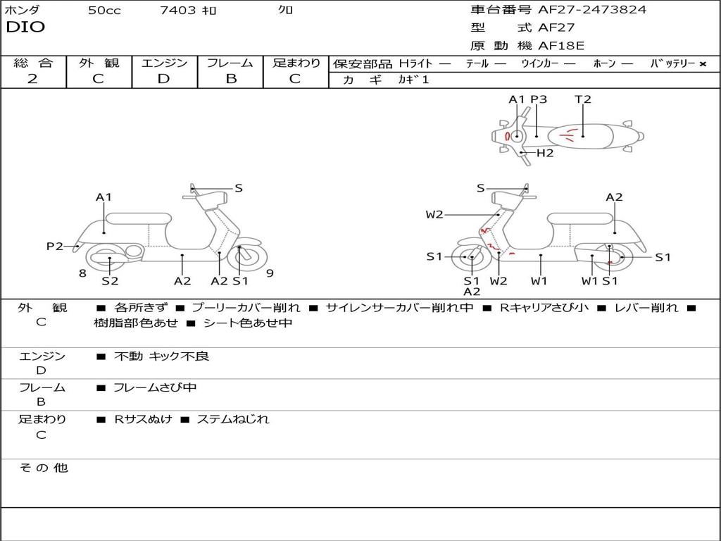 | Номер рамы / VIN | AF27-2473824 |