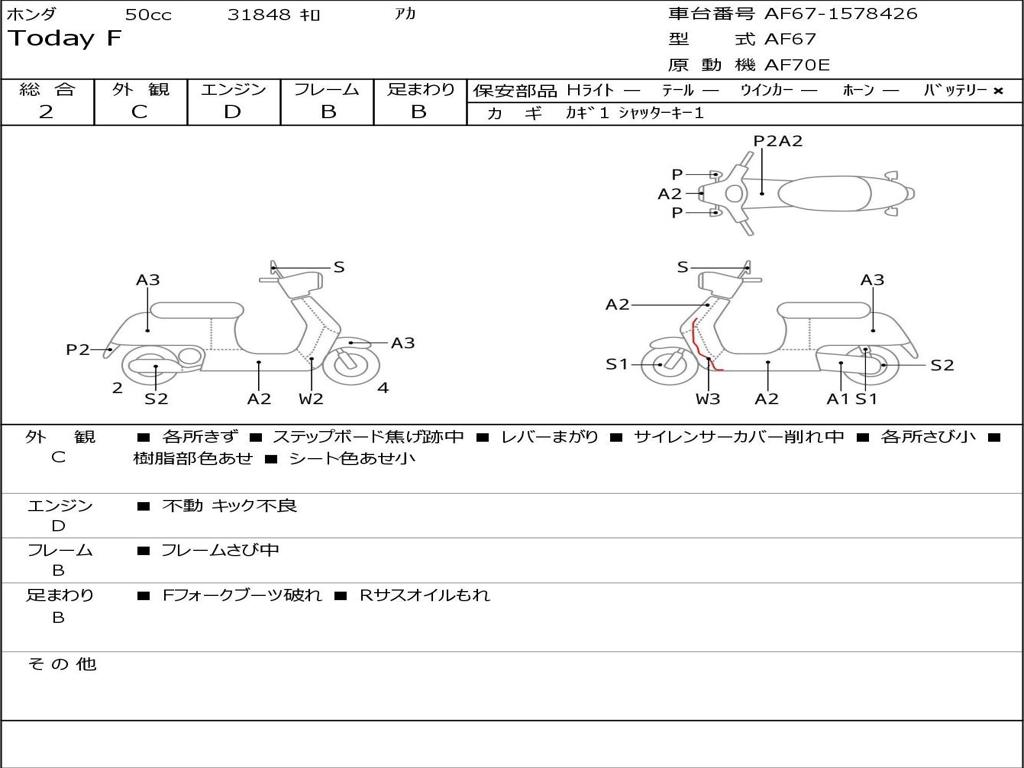 | Номер рамы / VIN | AF67-1578426 |