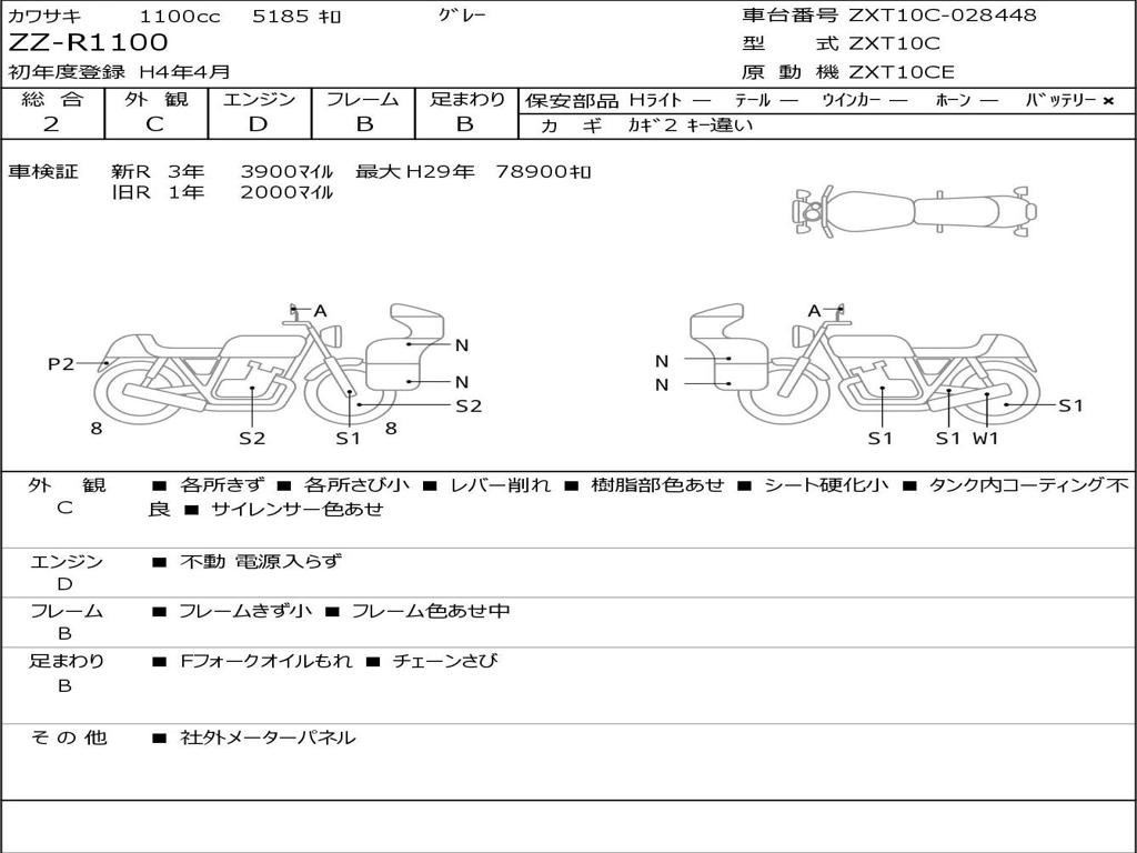 | Номер рамы / VIN | ZXT10C-028448 |