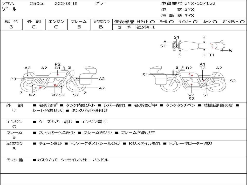 | Номер рамы / VIN | 3YX-057158 |