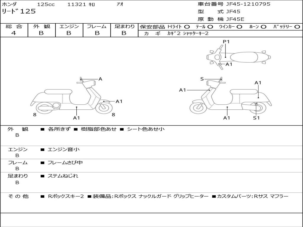 | Номер рамы / VIN | JF45-1210795 |