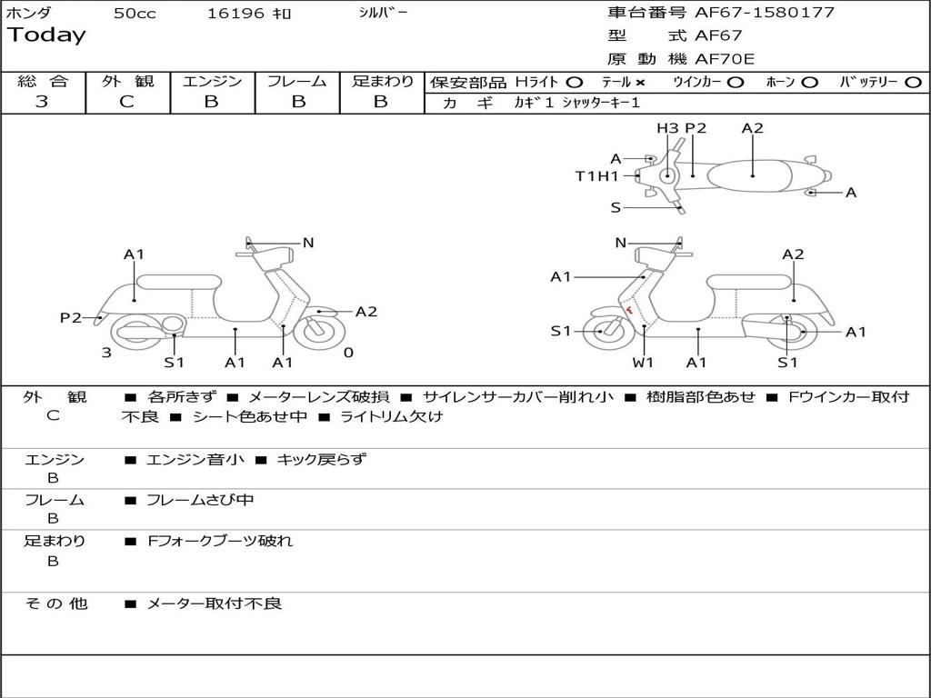 | Номер рамы / VIN | AF67-1580177 |