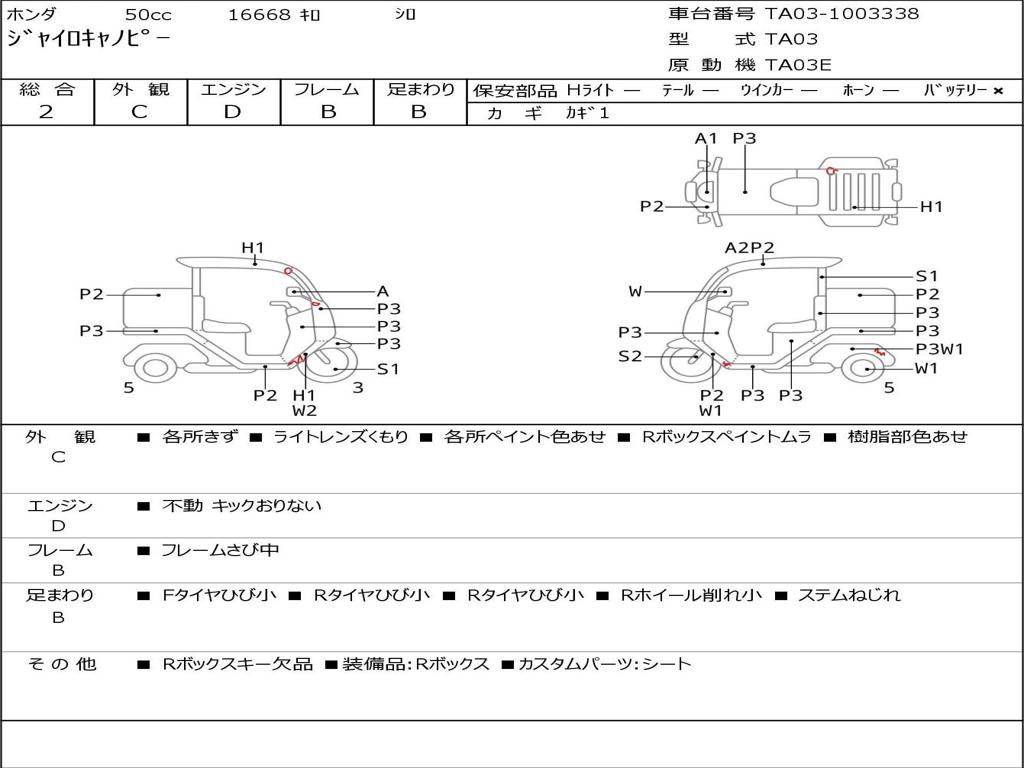 | Номер рамы / VIN | TA03-1003338 |