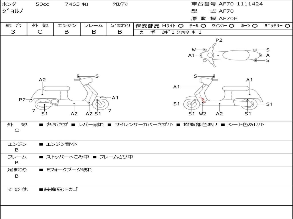 | Номер рамы / VIN | AF70-1111424 |