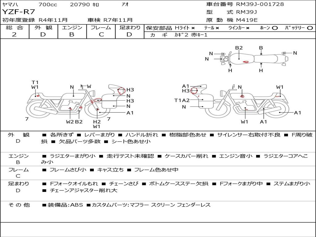 | Номер рамы / VIN | RM39J-001728 |