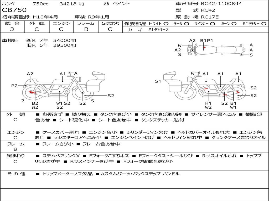 | Номер рамы / VIN | RC42-1100844 |