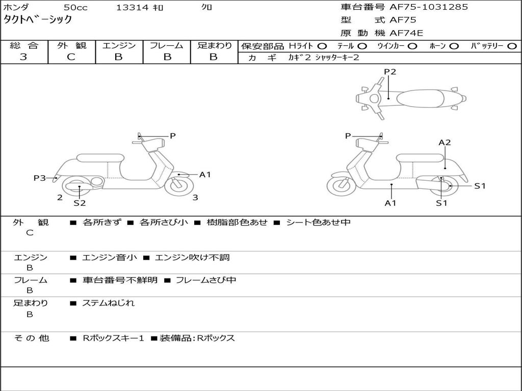 | Номер рамы / VIN | AF75-1031285 |