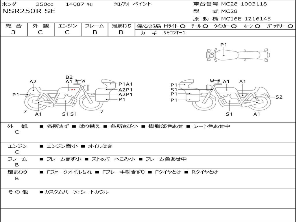 | Номер рамы / VIN | MC28-1003118 |
