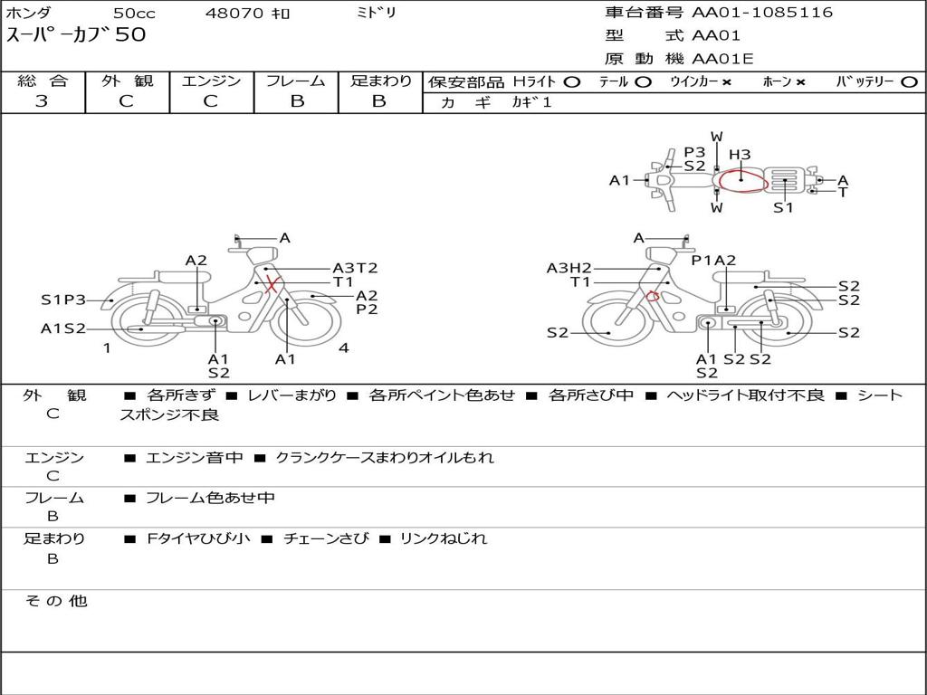 | Номер рамы / VIN | AA01-1085116 |