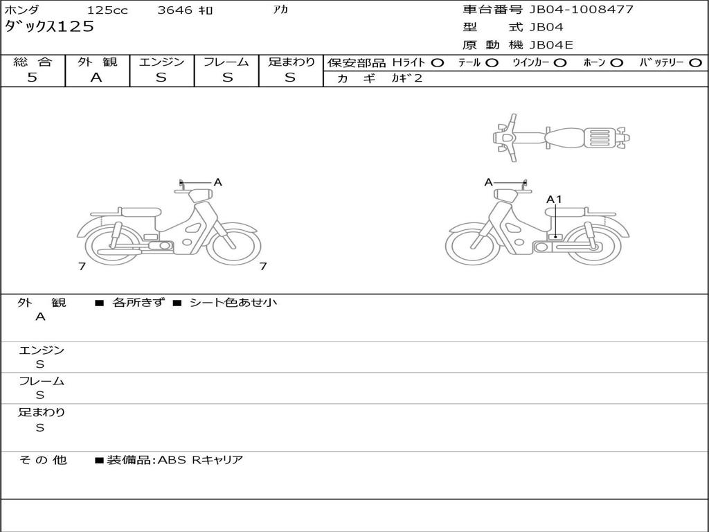| Номер рамы / VIN | JB04-1008477 |