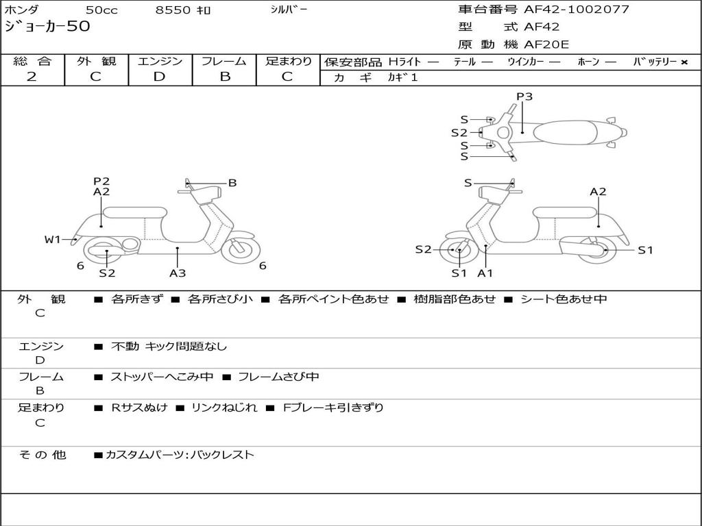 | Номер рамы / VIN | AF42-1002077 |