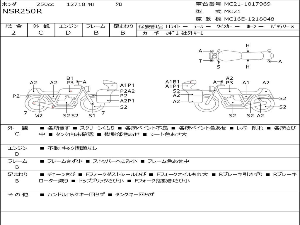 | Номер рамы / VIN | MC21-1017969 |