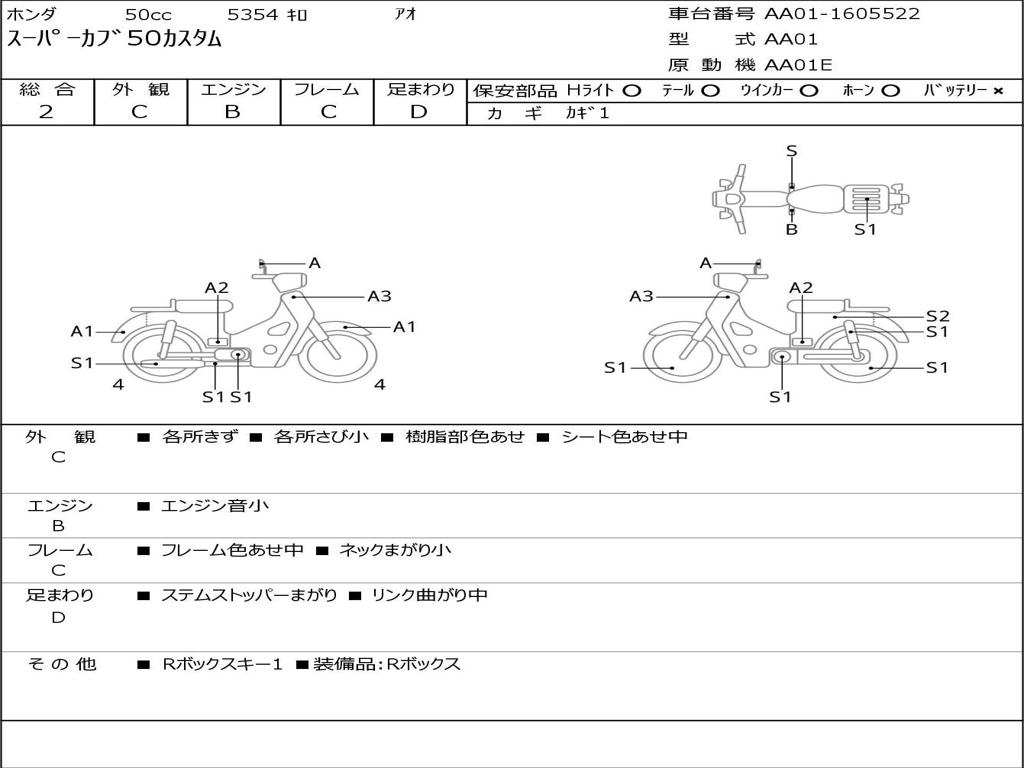 | Номер рамы / VIN | AA01-1605522 |