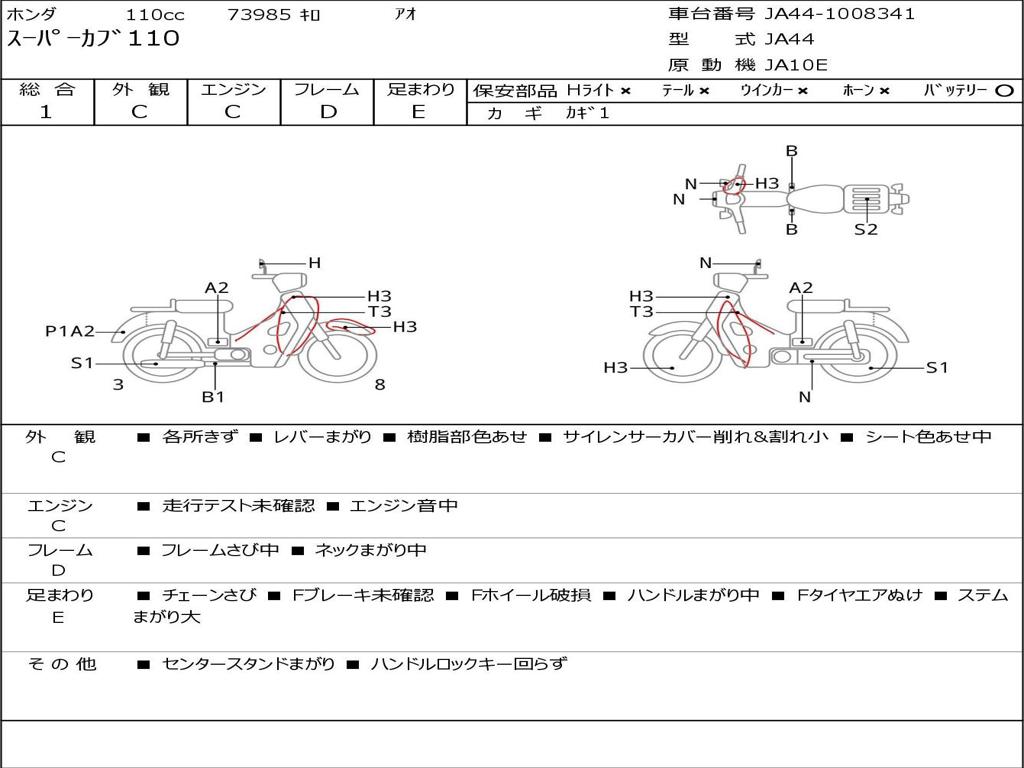 | Номер рамы / VIN | JA44-1008341 |