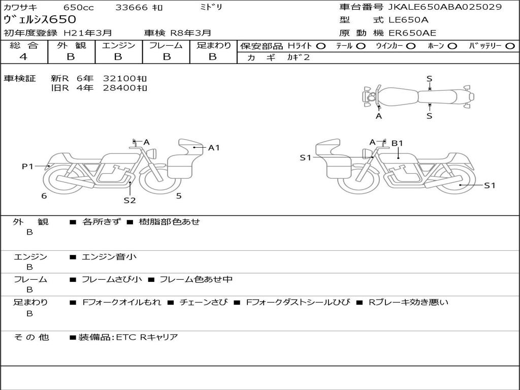 | Номер рамы / VIN | JKALE650ABA025029 |