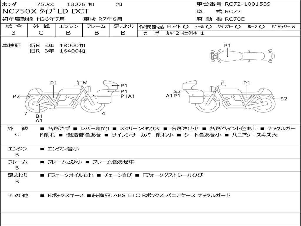 Номер рамы / VIN | RC72-1001539 |