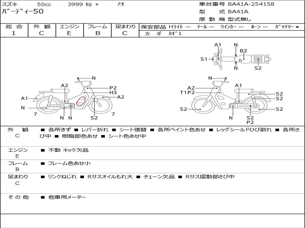 | Номер рамы / VIN | BA41A-254158 |