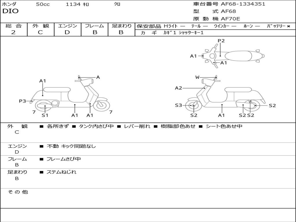 | Номер рамы / VIN | AF68-1334351 |