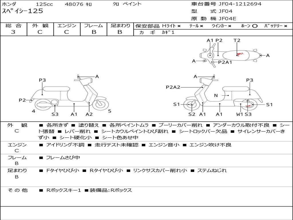 | Номер рамы / VIN | JF04-1212694 |