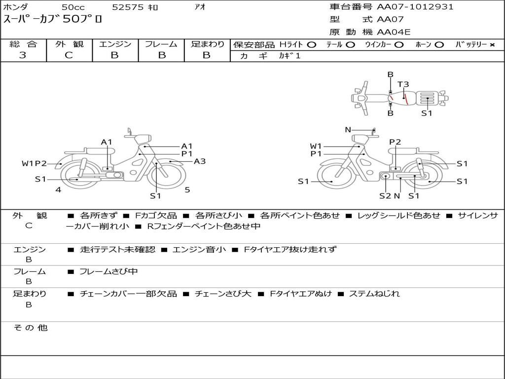 | Номер рамы / VIN | AA07-1012931 |