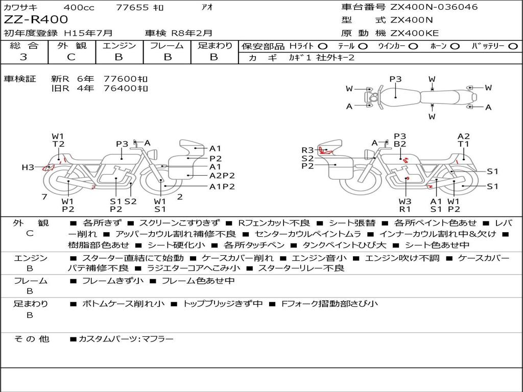 | Номер рамы / VIN | ZX400N-036046 |
