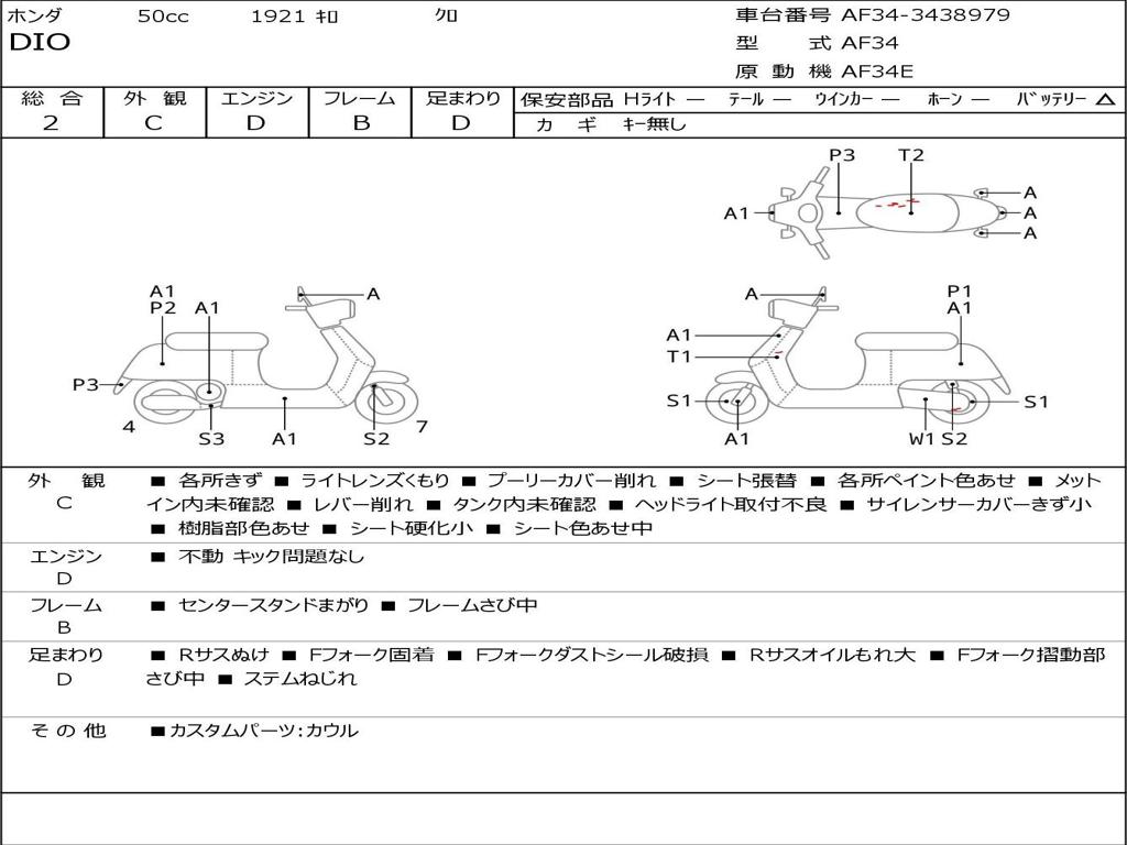 | Номер рамы / VIN | AF34-3438979 |