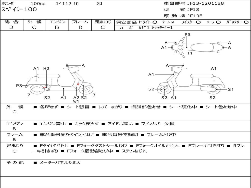 | Номер рамы / VIN | JF13-1201188 |