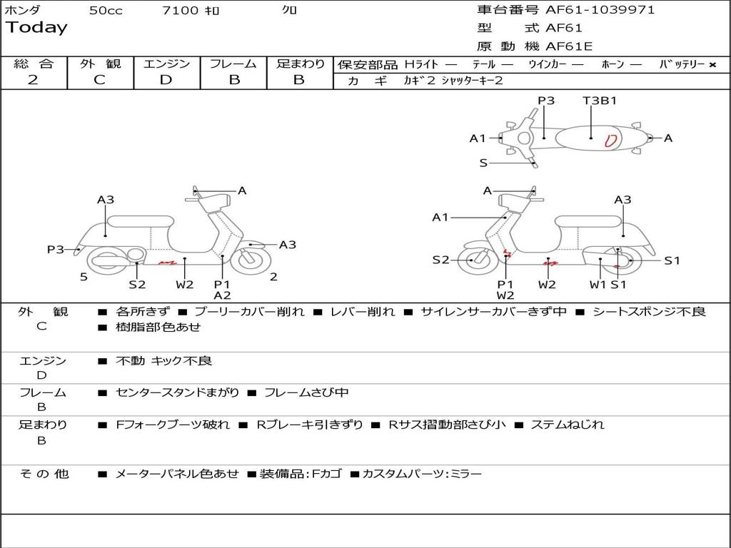 | Номер рамы / VIN | AF61-1039971 |