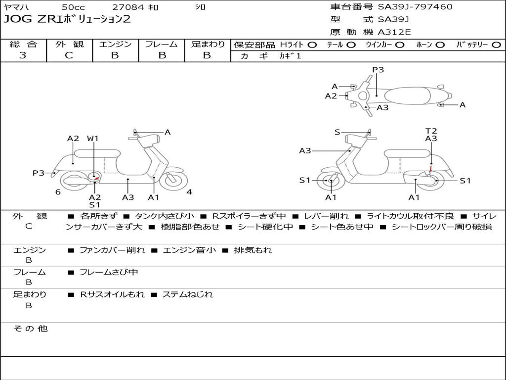 | Номер рамы / VIN | SA39J-797460 |