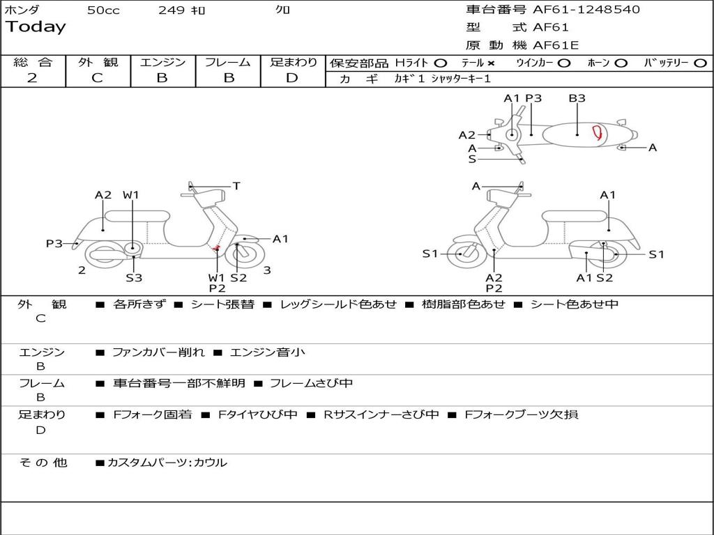 | Номер рамы / VIN | AF61-1248540 |