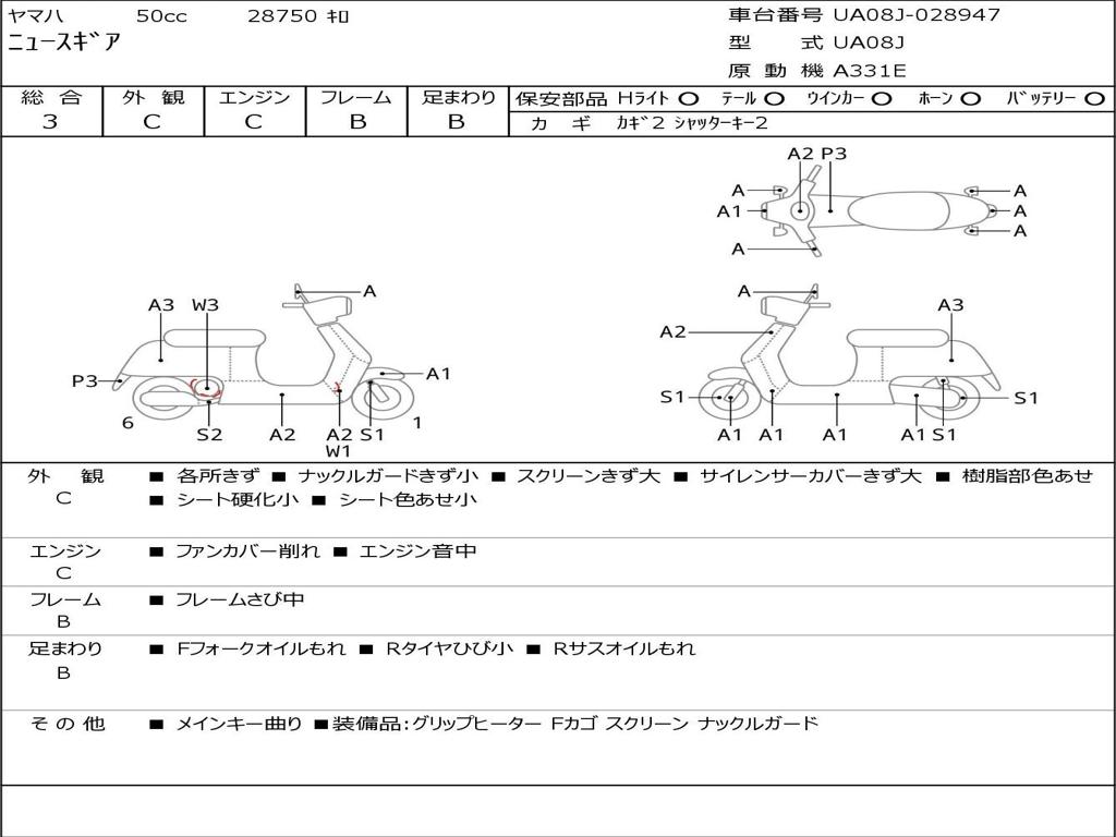 | Номер рамы / VIN | UA08J-028947 |