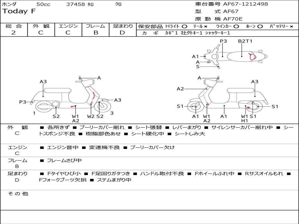 | Номер рамы / VIN | AF67-1212498 |