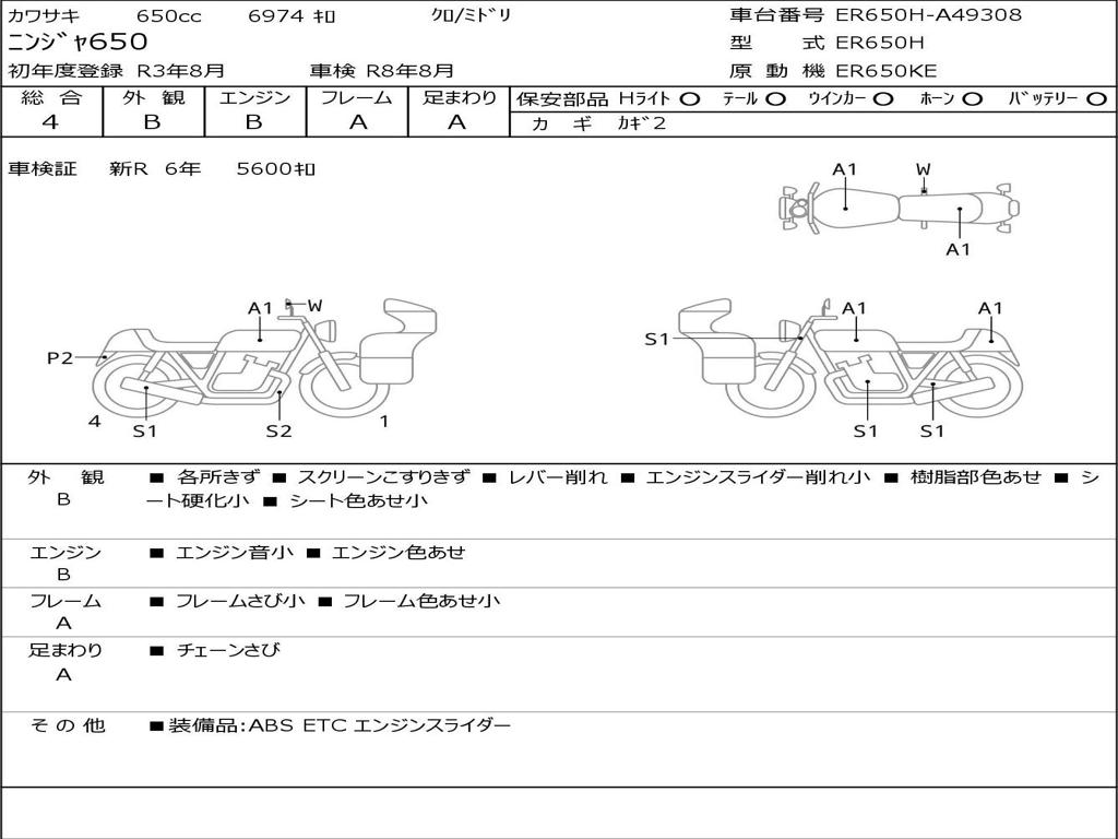| Номер рамы / VIN | ER650H-A49308 |