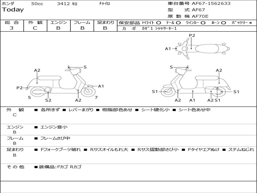 | Номер рамы / VIN | AF67-1562633 |