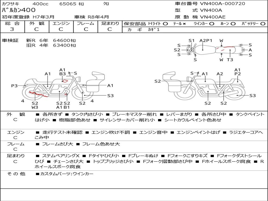 | Номер рамы / VIN | VN400A-000720 |