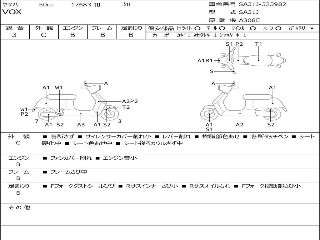 | Номер рамы / VIN | SA31J-323982 |