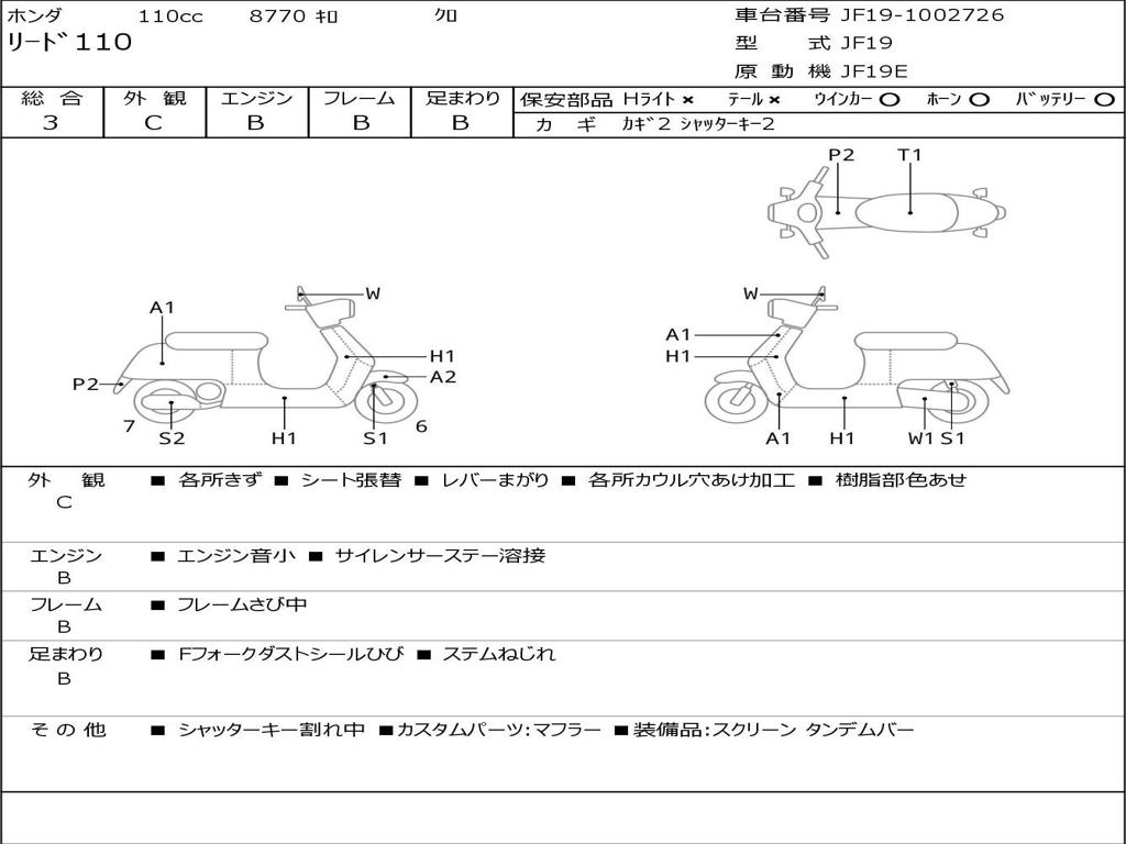 | Номер рамы / VIN | JF19-1002726 |