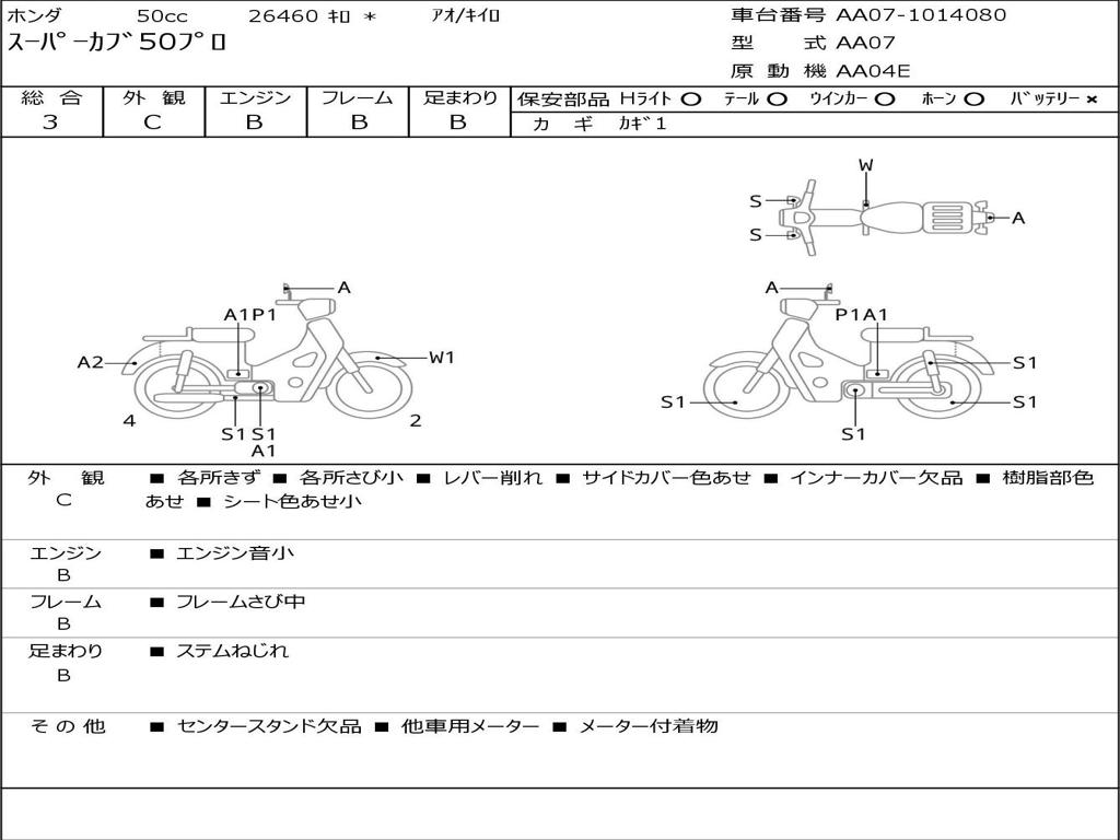 | Номер рамы / VIN | AA07-1014080 |