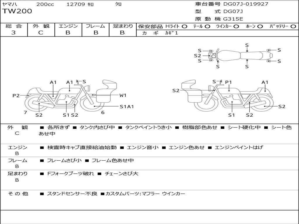 | Номер рамы / VIN | DG07J-019927 |