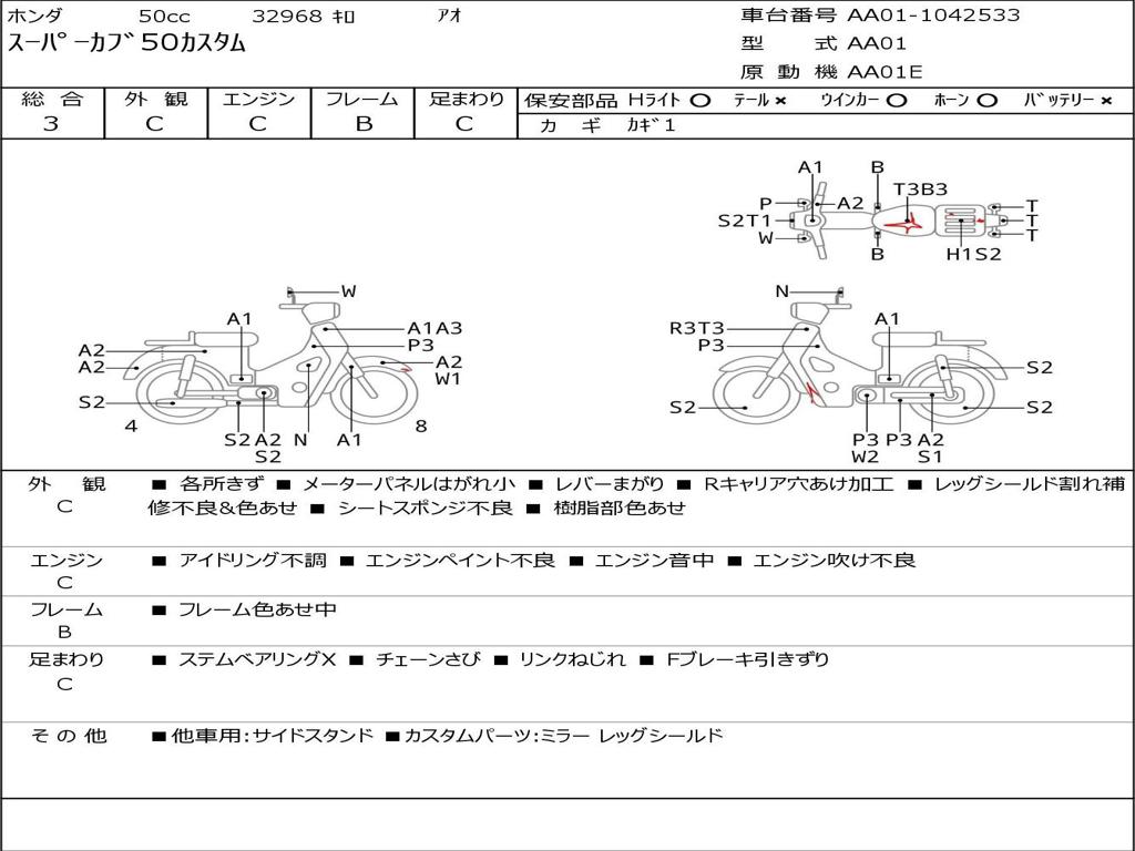 | Номер рамы / VIN | AA01-1042533 |