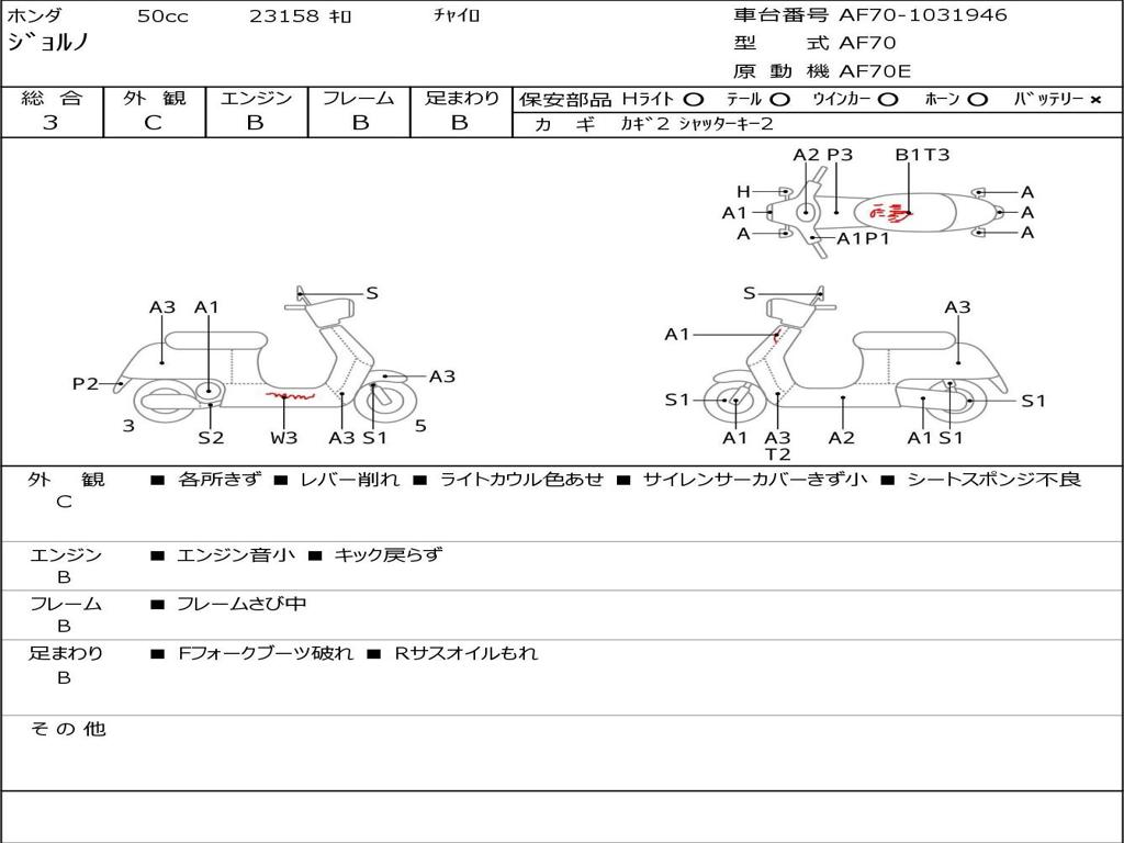 | Номер рамы / VIN | AF70-1031946 |