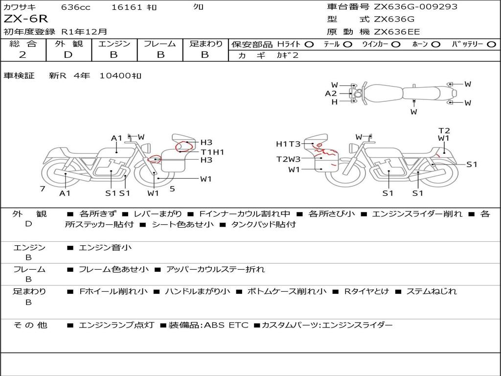 | Номер рамы / VIN | ZX636G-009293 |