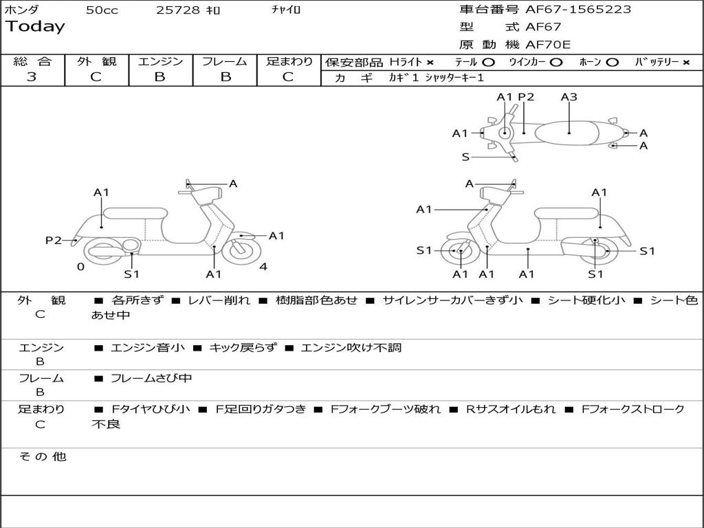 | Номер рамы / VIN | AF67-1565223 |