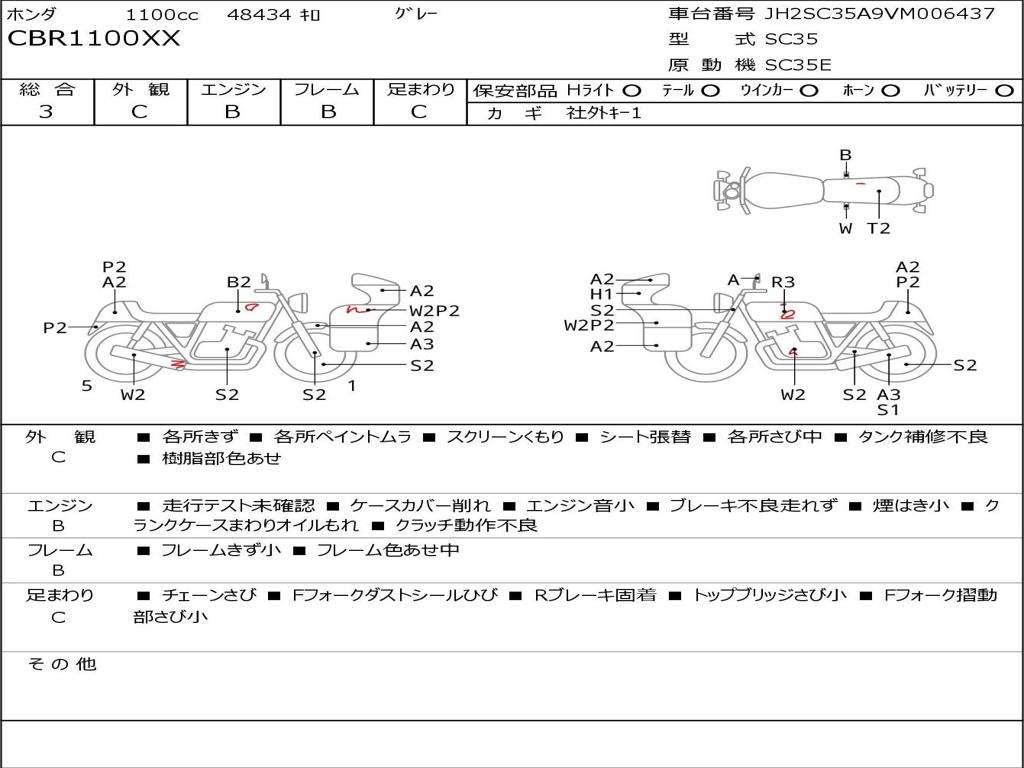 | Номер рамы / VIN | JH2SC35A9VM006437 |