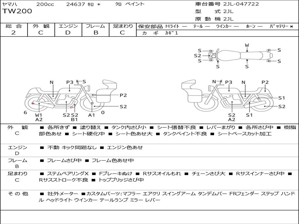 Номер рамы / VIN | 2JL-047722 |