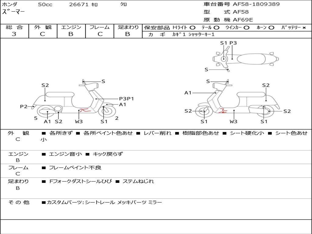 | Номер рамы / VIN | AF58-1809389 |